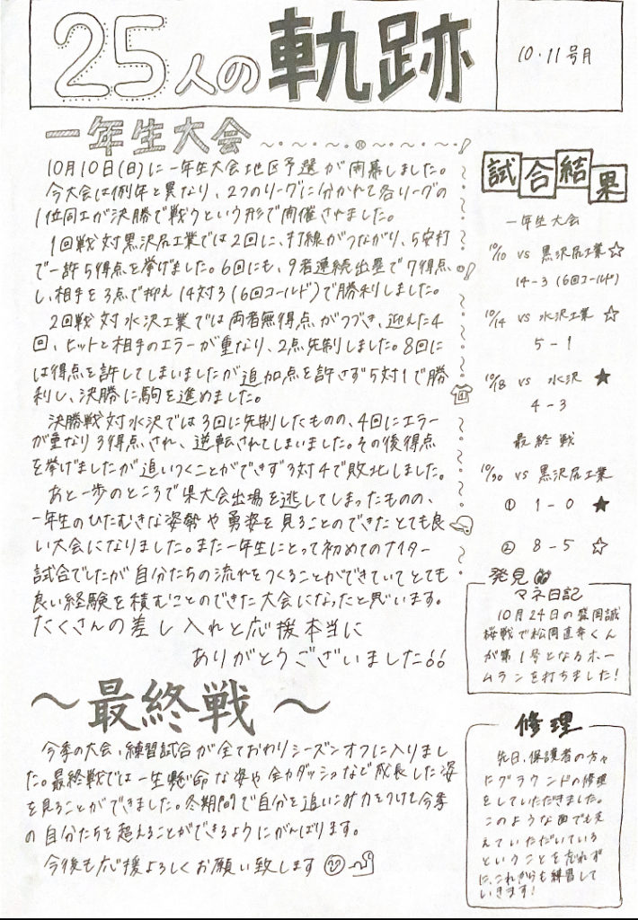 10・11月号発行しました!なかなか発行できずに遅くなってしまい、申し訳ございません。