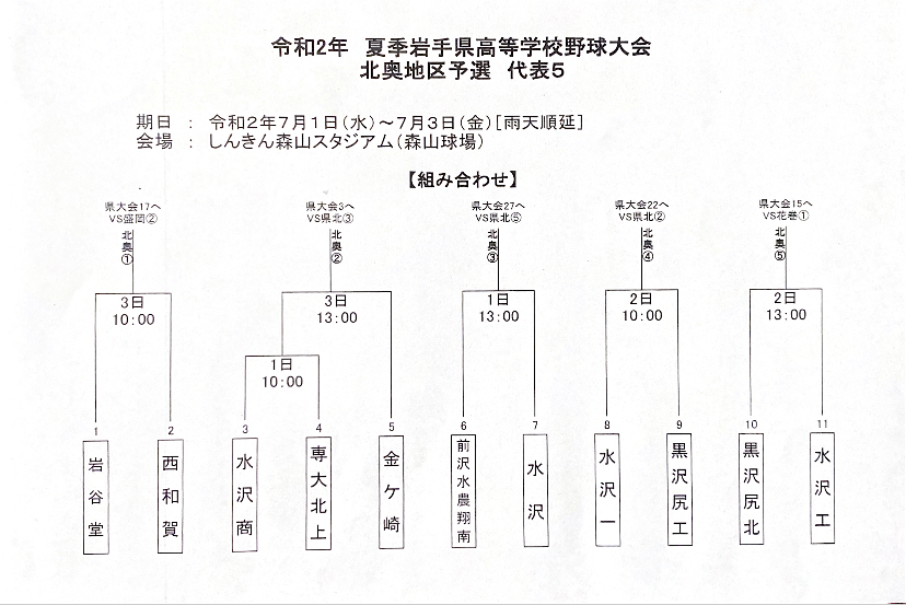 本日、令和2年夏季岩手県高等学校野球大会北奥地区予選の抽選が行われました。