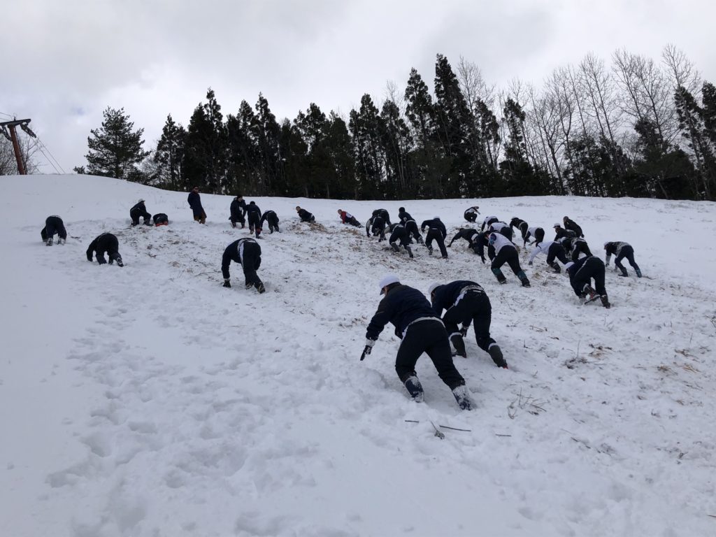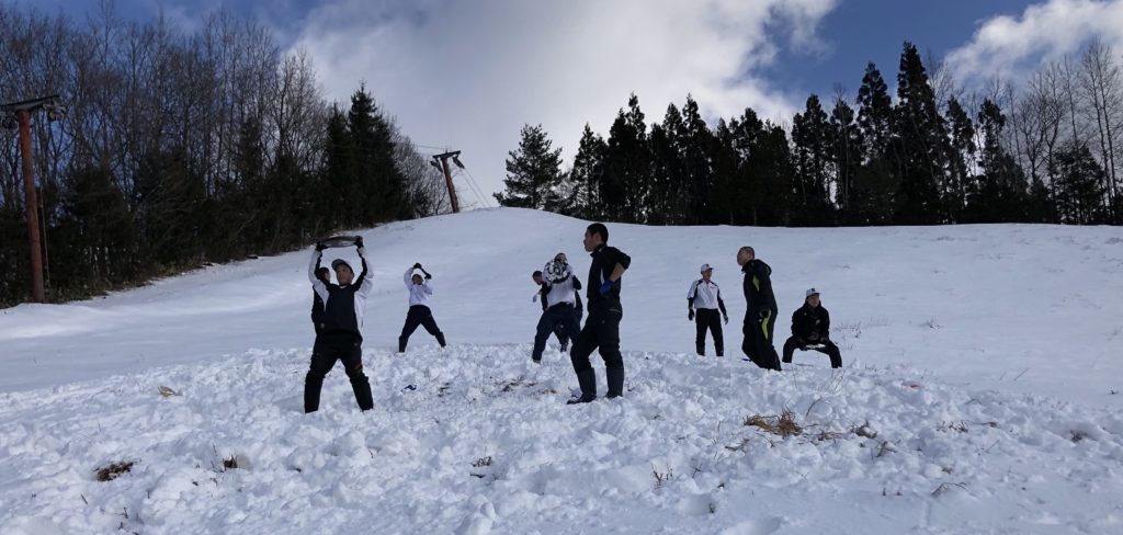 今日は午前中、雪山でおもりを持ったトレーニングをし、その後、山をかけ上がりました。
